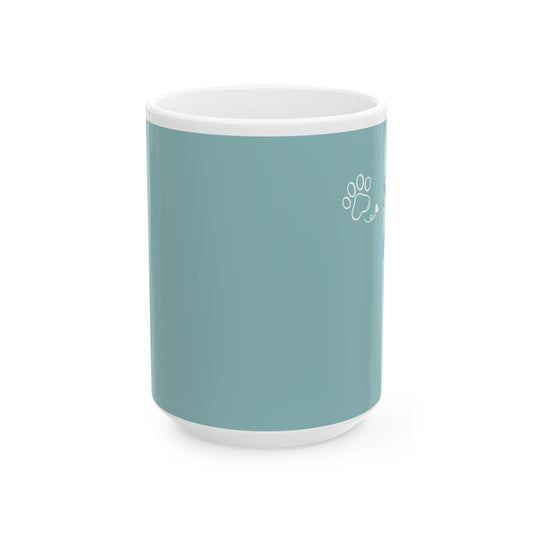Pet Lover Ceramic Mug – "Sorry. Can't. Pets." Teal Paw Print Coffee Cup (15oz)