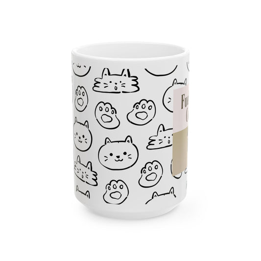 Cat Pattern Ceramic Mug — "Fueled by Coffee and Fur" (15oz)